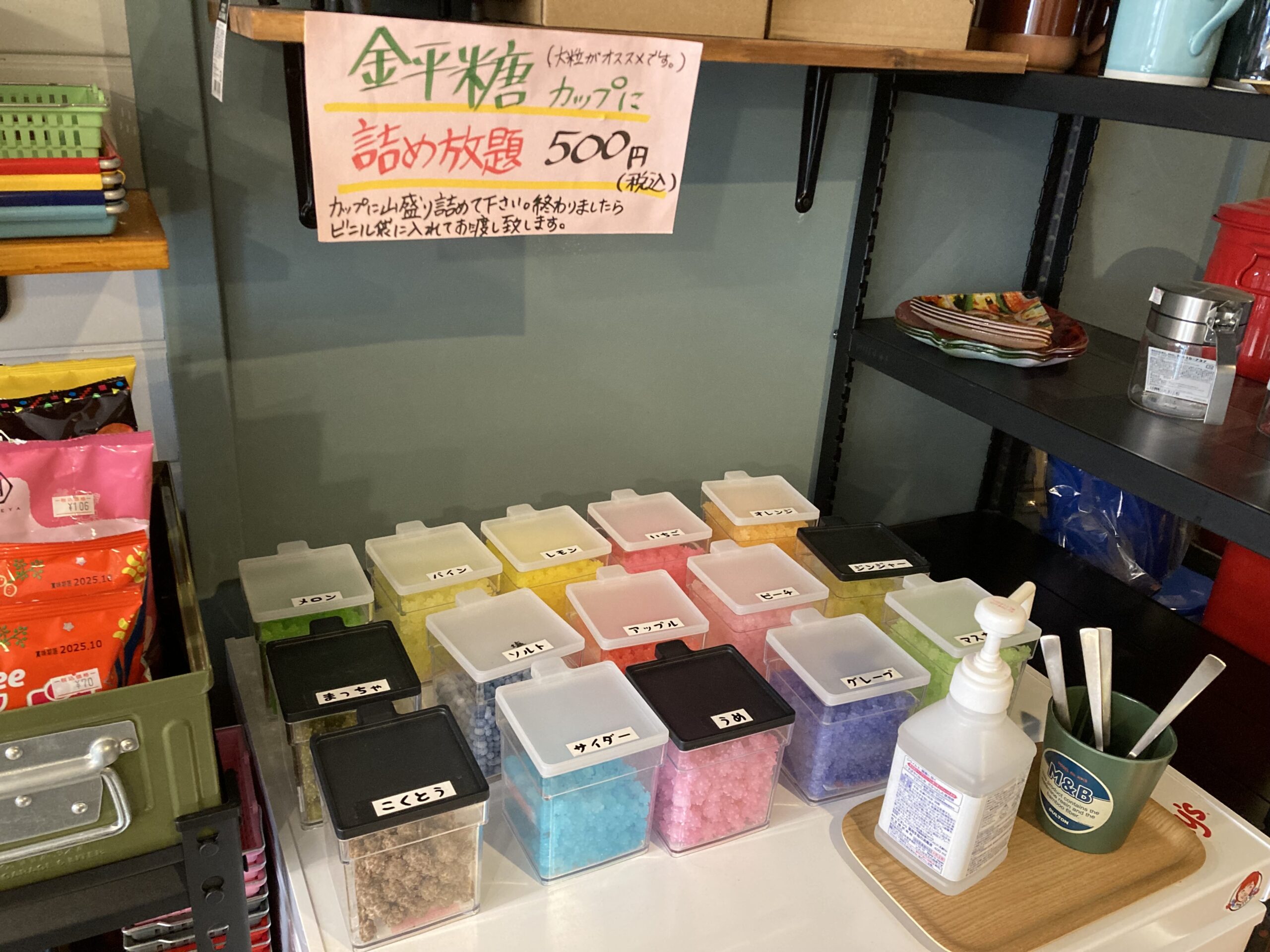 さまざまなフレーバーの金平糖、詰め放題500円