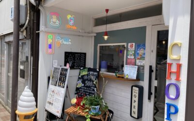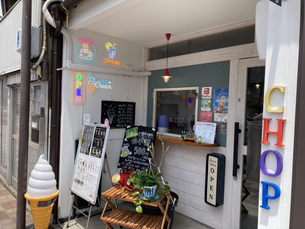 それがこの「CHOP!」です。店舗のすぐ隣は、人気のたこ焼き屋「えでん」。「古民家あいせき」の駐車場も使えます。