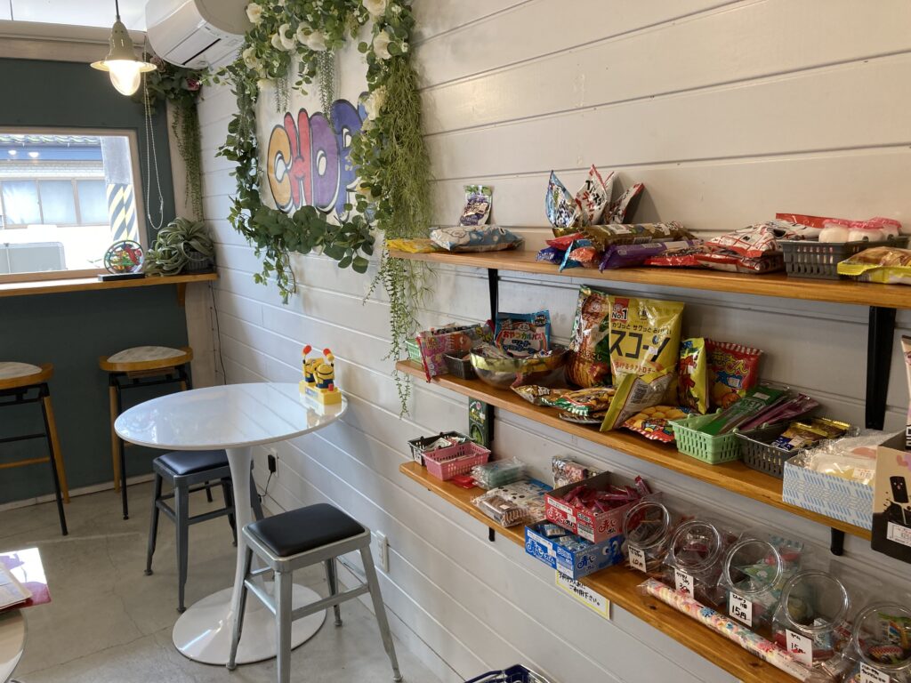 お店にくる親子の皆さんのリクエストを受け、店内の配置を変えて駄菓子コーナーをつくったとのこと。放課後、子どもたちだけで買いにくる姿もあるそうです。