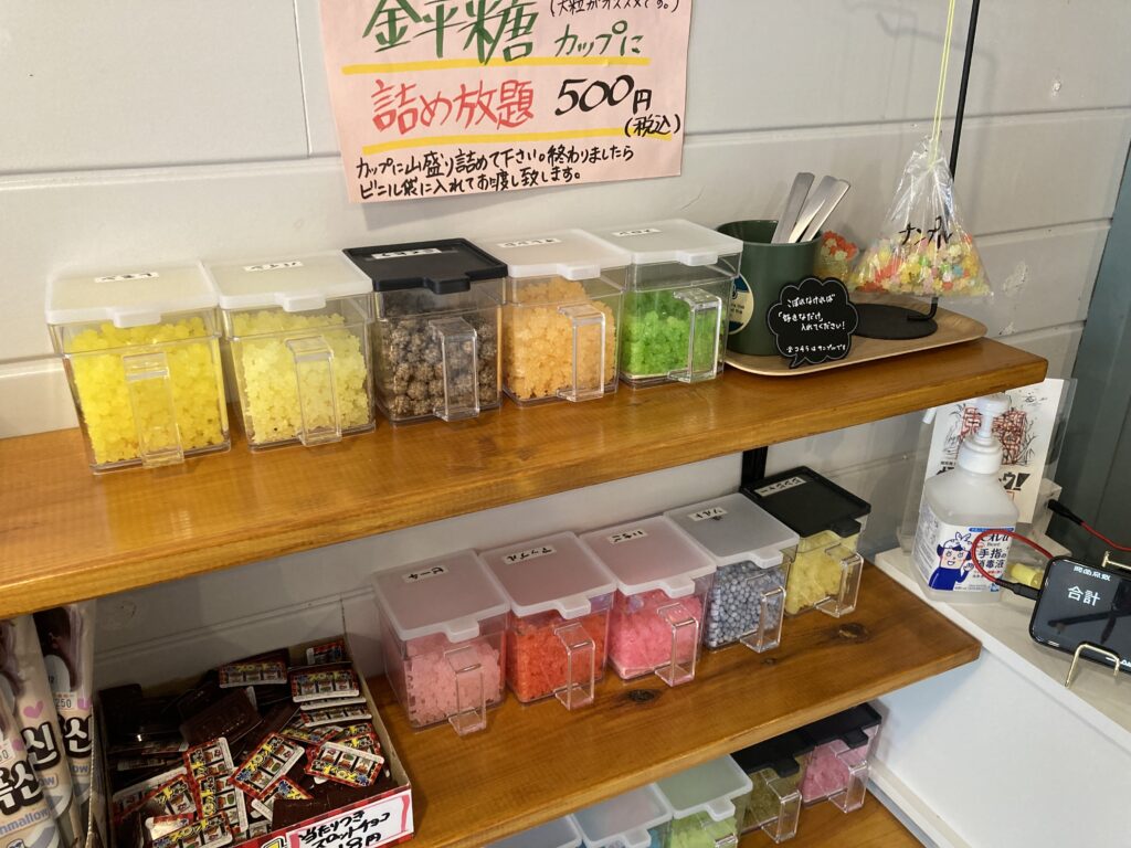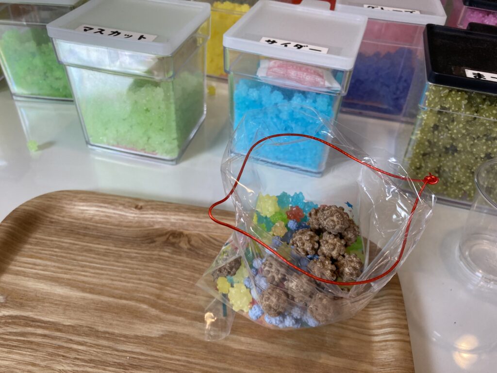 さまざまなフレーバーの金平糖、詰め放題500円