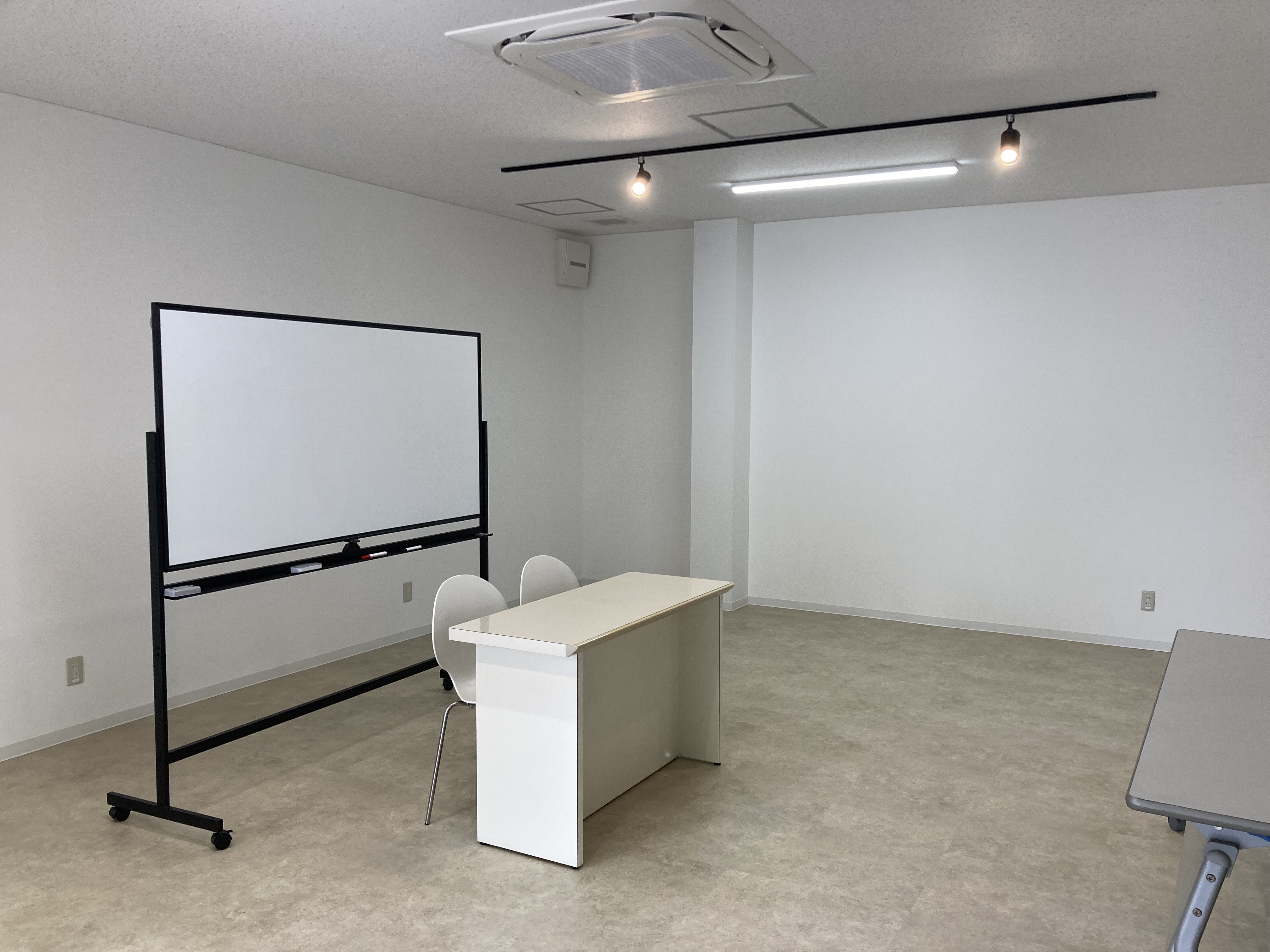 ホワイトボードに、しっかりとした机と椅子。