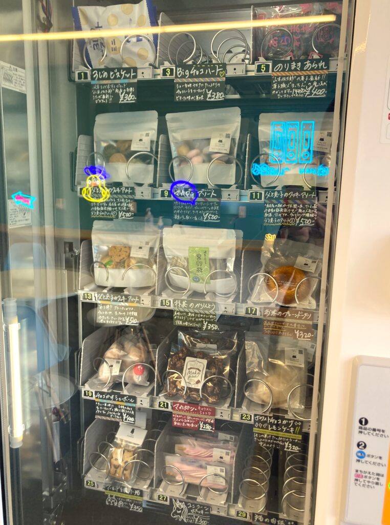 お菓子の自販機かわいい。