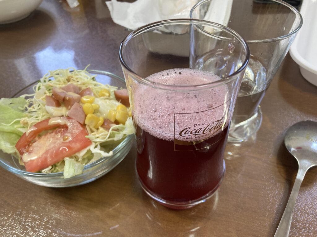 ビサップジュース:ハイビスカスの花を煮出したエキスをレモンと砂糖で味付け。
