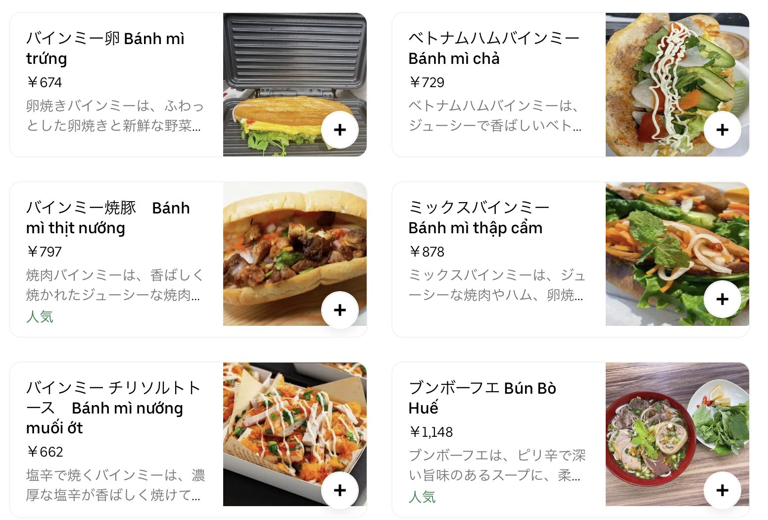 メニューはバインミー、ブン・フォー、タピオカミルクティーなど。