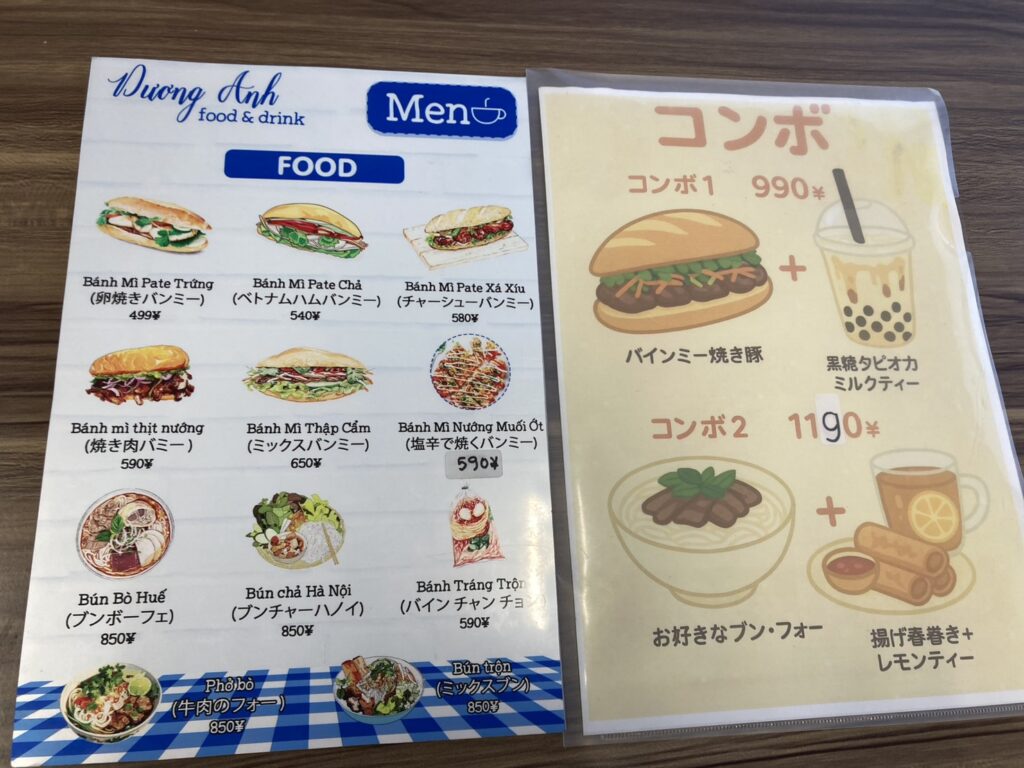 メニューはバインミー、ブン・フォー、タピオカミルクティーなど。